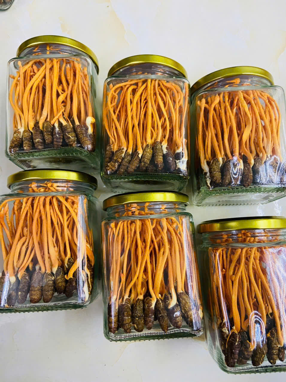 - Ngâm rượu hoặc mật ong: Đây là cách chế biến nhộng đông trùng hạ thảo được nhiều người áp dụng nhất. Bạn chỉ cần cho dược liệu bào bình thủy tinh, thêm rượu hoặc mật ong vào ngập bình, sau đó đậy kín nắp và 1 tháng sau có thể đem ra dùng. Đối với rượu, chỉ nên uống 2 lần/tuần, mỗi lần 10ml. Còn đối với cách ngâm mật ong, mỗi lần dùng 1 thìa pha với 100ml nước ấm, uống khoảng 2 – 3 lần/tuần.